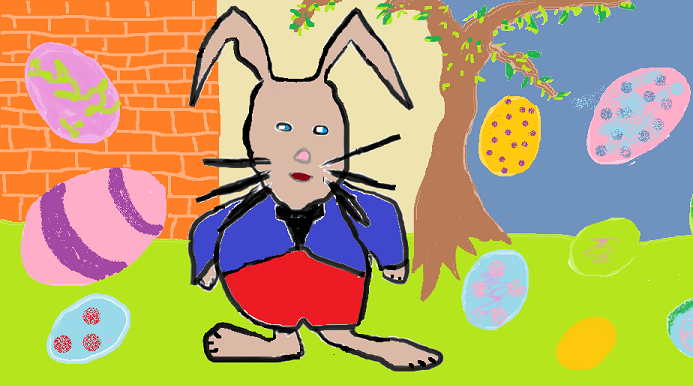 The last few days have been beautiful outside. Bright sun, comforting warm breezes. The tulips and daffodills are beginning to show their green. Even though it snowed last weekend and last night huge snowflakes blew in from somewhere, Spring seems to have arrived. This morning there was no sign of the snow, just the Easter Bunny with a basket of eggs. I managed to get a quick shot of him before he spotted me. I guess he is practicing for Easter Sunday.